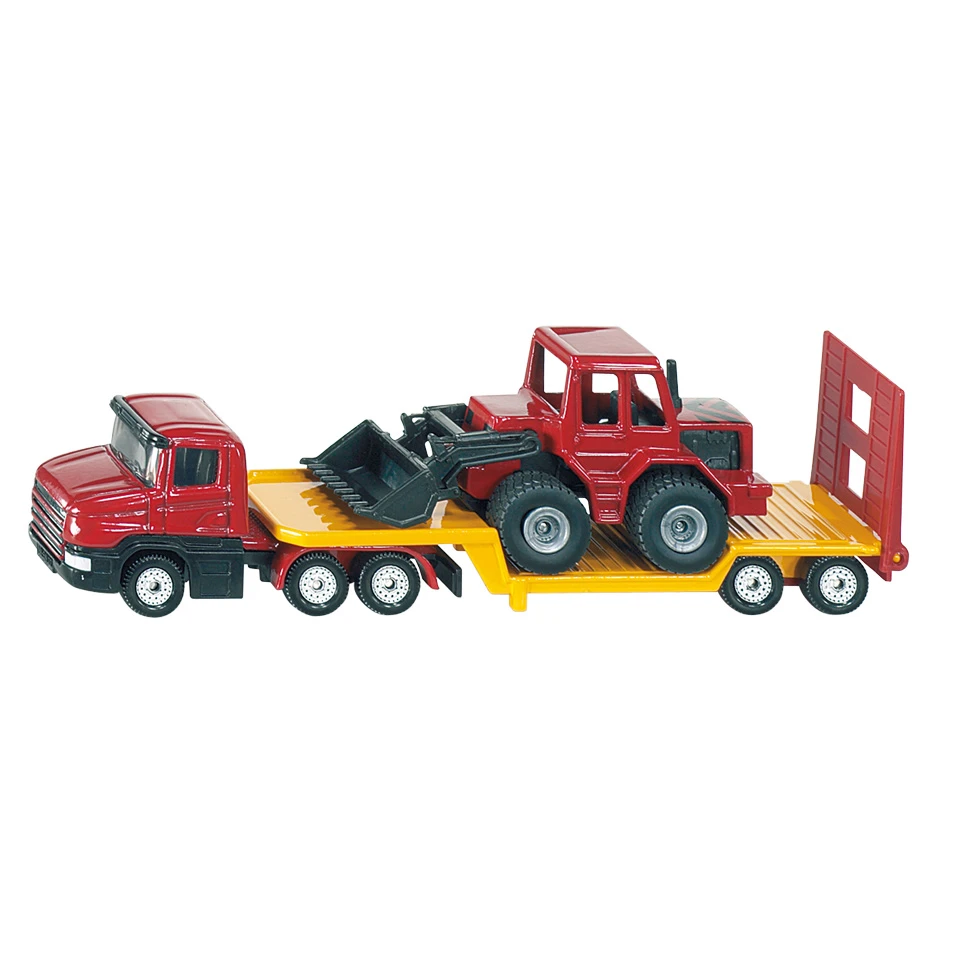 Breng de shovel naar plaats van bestemming met deze dieplader. Zorg dat de shovel goed vast staat en eenmaal aangekomen? Rijd de shovel via de achterklep weer van de dieplader af.