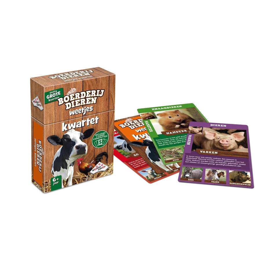 Dit kwartet is niet alleen een super leuk spel, het is ook erg leerzaam. Op de kaarten staan interessante weetjes en afbeeldingen van boerderijdieren.