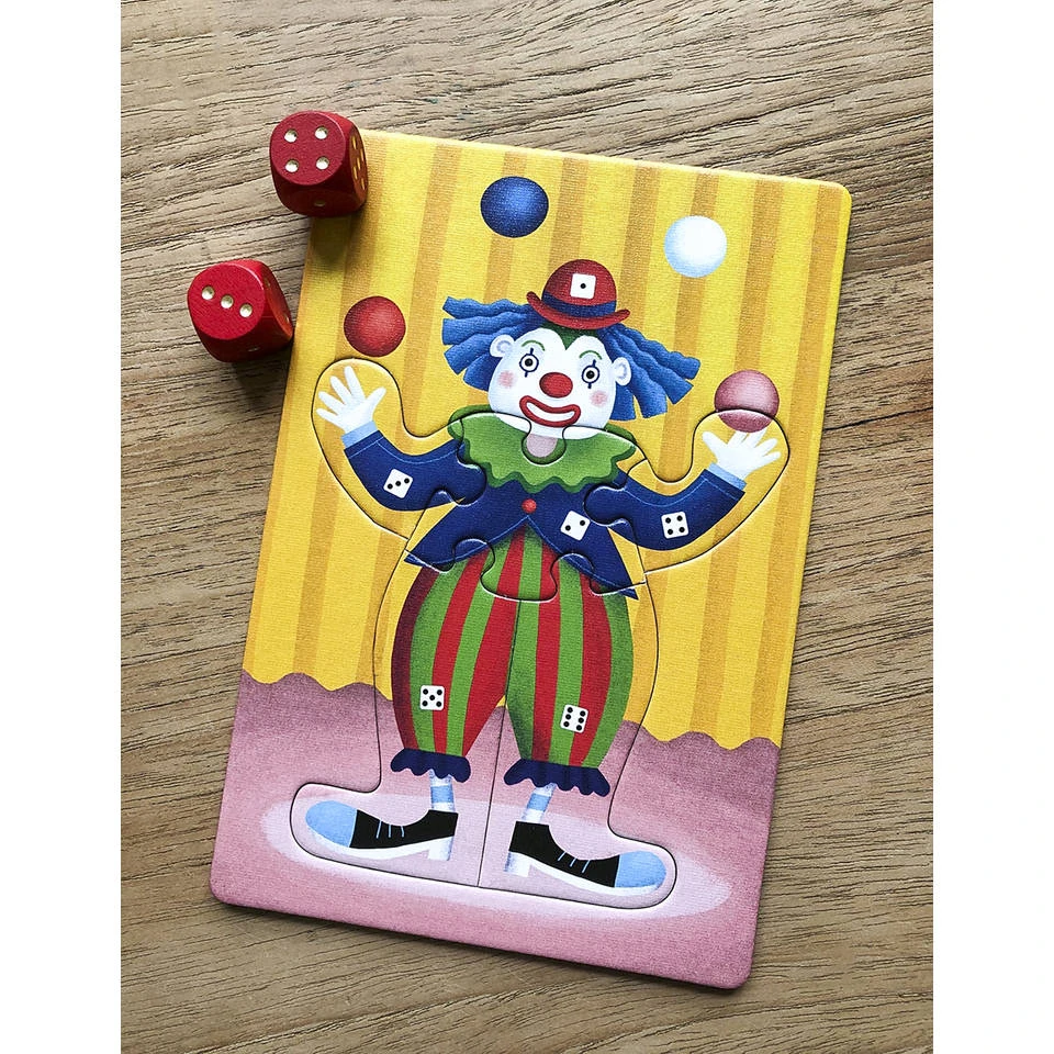 Circus Jumbolino is in de stad. Maar waar zijn de artiesten? Door te dobbelen en slim te rekenen ontvang je puzzelstukken. Die vormen samen zes circusartiesten. Heb jij de meeste artiesten verzameld? Dan red jij het circus!