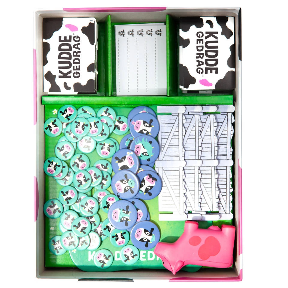Kuddegedrag is een gezelschapsspel met een simpele zwart-wit missie: denk zoals iedereen. Het doel van het spel is om als eerste speler acht koefiches te verzamelen. Doe dit door als de kudde te denken en hetzelfde antwoord op te schrijven als alle andere spelers. Het spel begint met een willekeurige vraag. Liever robotarmen of robotbenen? Wat is het grootste dier dat je zou kunnen optillen? Wat is de beste donutvulling? Iedereen schrijft stiekem een antwoord op. Als iedereen klaar is, onthullen de spelers een voor een hun antwoorden. Wanneer alle antwoorden zijn onthuld, tel ze dan op om erachter te komen welk antwoord het meest voorkomende was. Als je antwoord tot de meerderheid behoort, verzamel dan één koefiche als beloning. Als je de enige speler was die een antwoord opschreef dat niet overeenkwam met dat van iemand anders, dan ben je een vreemde eend in de bijt. Als straf moet je de Roze Koe aan jouw kudde toevoegen en is je kudde voorlopig niets waard – totdat je de Roze Koe aan iemand anders kan doorgeven . Want wie die Roze Koe in zijn of haar bezit heeft, kan het spel niet winnen.