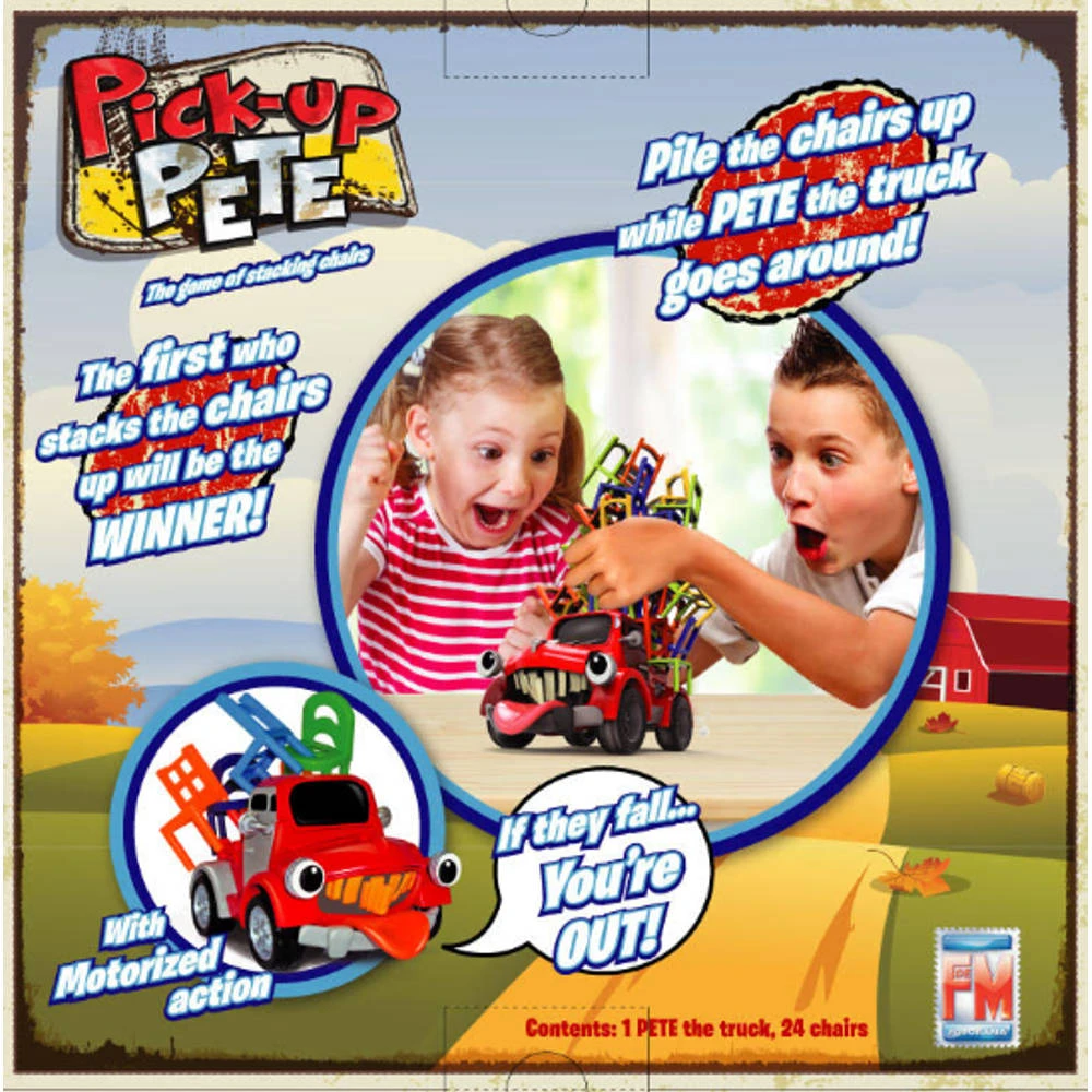 Pete de wagen gaat rond en rond. Probeer bij dit leuke Pick Up Pete spel als eerste je stoelen op de achterbak van de truck te stapelen.
