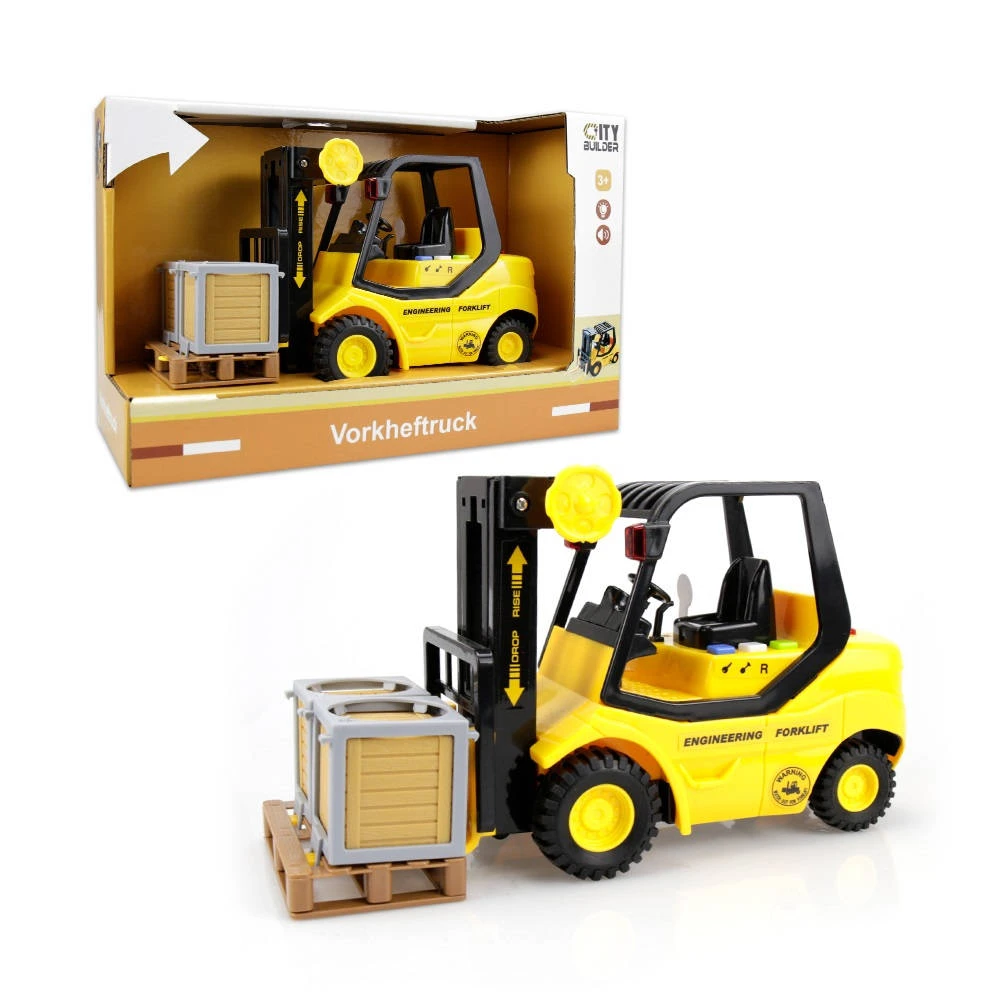 - Deze vorkheftruck met licht- en geluidseffecten is onmisbaar op de bouwplaats.
